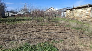 На участке персиковый сад, малинник на 100 кустов, абрикосовые деревья, вишня, черешня, тутовник (шелковица), инжир, яблони, миндаль.